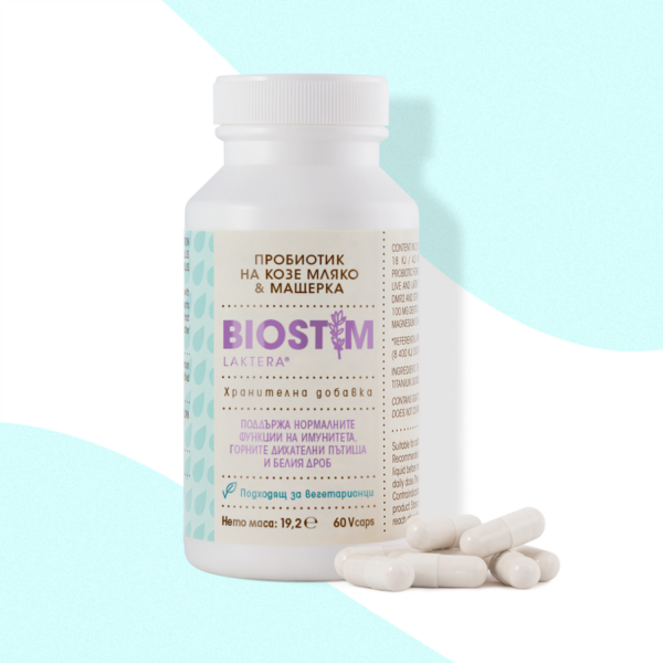 Биостим Лактера 60 капсули е пробиотик с козе мляко и мащерка. Поддържа нормалните функции на имунитета, горните дихателни пътища и белия дроб.