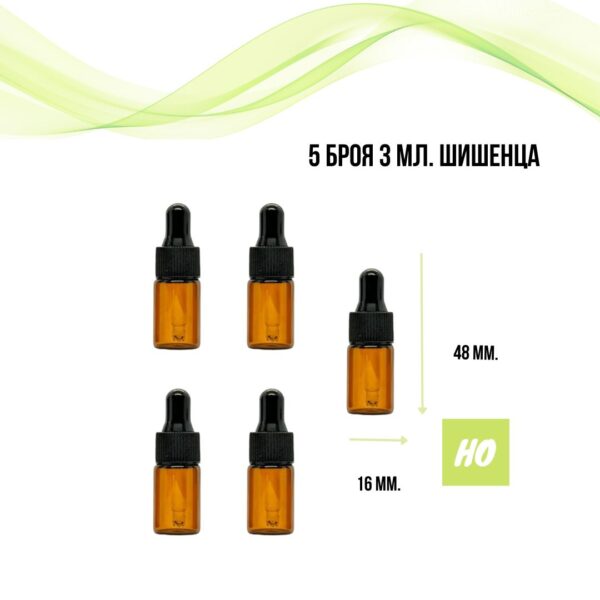 Шишенца от тъмно кафяво стъкло с пипета за съхранение на всякакви етерични масла и козметика. Подходящо за съхранение на продукти чувствителни към слънчева светлина. Удобни за пренасяне на малки количества при пътуване, лесни за дозиране и създаване на ароматни реализации.