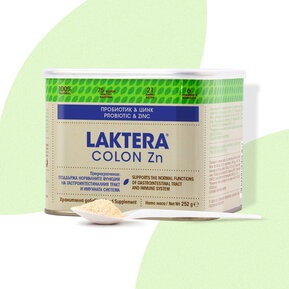 Лактера Колон Zn 252 г поддържа нормалните функции на гастроинтестиналния тракт и имунната система. Пробиотик & Цинк
