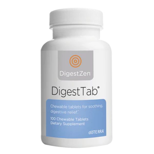 DigestZen е една от най-популярните смеси на doTERRA поради способността й да подпомага храносмилането, да успокоява понякога стомашно разстройство и да поддържа цялостното храносмилателно здраве. Сега тази невероятно ефективна смес се предлага в удобна дъвчаща таблетка. doTERRA digesttab е таблетка с калциев карбонат, инфузирана с DigestZen Digestive Blend, за да осигури ползите от храносмилането – поддържащи етерични масла, както и киселините – неутрализиращи ползите от калциев карбонат.