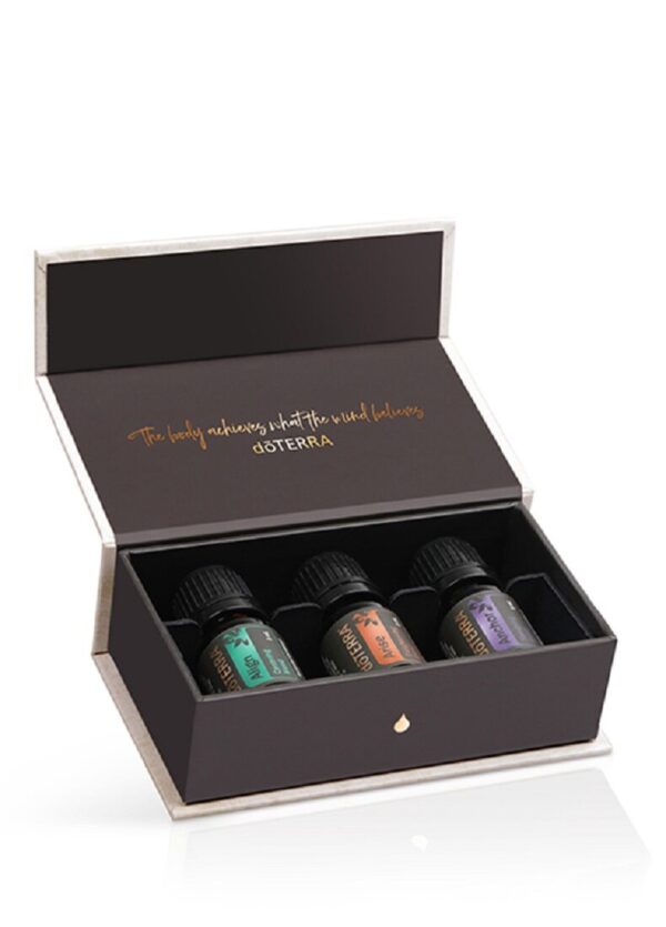 Йога колекцията на doTERRA включва 3-те масла, специално разработени за дифузиране по време на Вашите йога упражнения – Arise, Anchore и Align в шишенца от 5 мл. и луксозна подаръчна кутия.