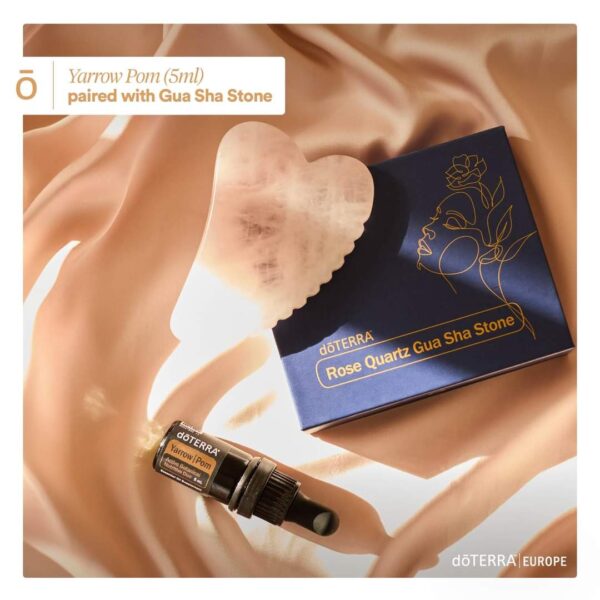 Етерично масло Бял равнец с нар doTERRA 5 мл., известно и като Yarrow POM, е уникална комбинация от етерично масло от бял равнец и студено пресовано масло от семена на нар. Тази патентована смес пристига в елегантна, луксозна опаковка, допълнена с подарък – Гуа-ша камък от розов кварц. Идеален подарък за всяка дама или изискано допълнение към вашата рутинна грижа за кожата.