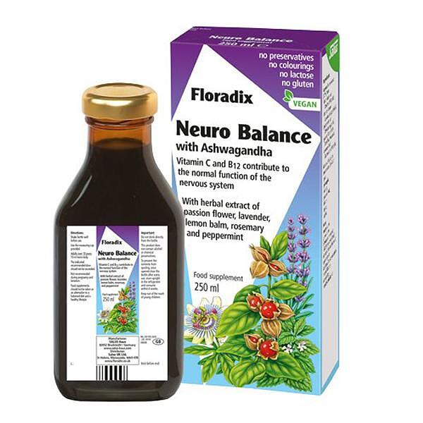 Floradix Баланс тоник с Ашваганда 250 мл. е натурален продукт за подкрепа и нормализиране на функциите на нервната състема. В него ще откриете коктейл от витамини С и В12; концентрирани плодове и билков екстракт от пасифлора цвят, лавандула, маточина, розмарин и мента.